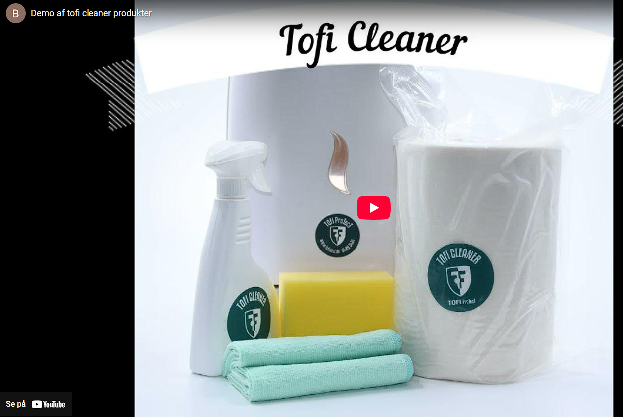 Tofi Cleaner kan anvendes som primært rengøringsmiddel på alle overflader, og man behøver ikke noget sekundært middel.